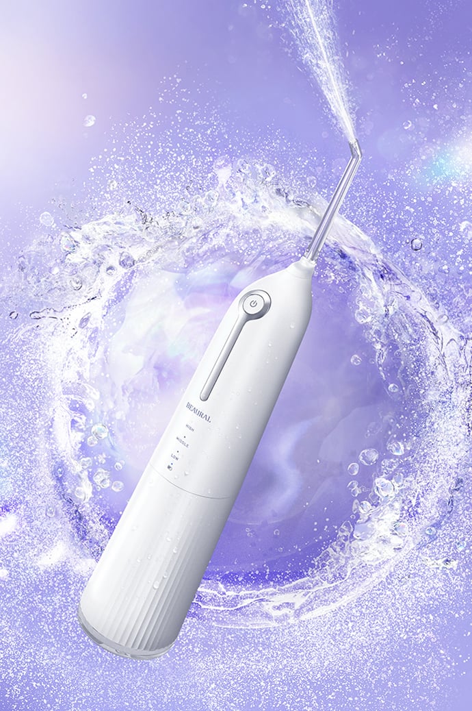 水流の力で歯ブラシが届きにくい歯間や歯周ポケットの歯垢を弾き飛ばす。