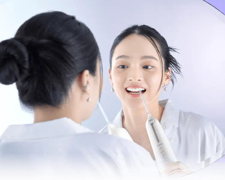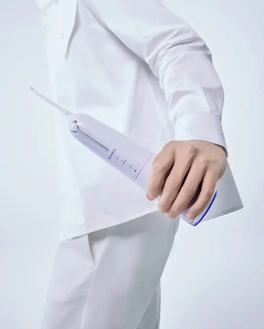 歯ぐきを傷めたり、水流の低下やノズルが変形するおそれがあるため、歯や歯ぐきから少し離して水流をあててください。