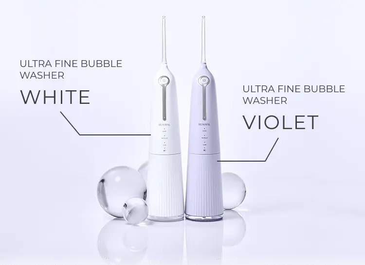 ウルトラファインバブルウォッシャーは、歯磨きや洗口剤では除去困難な微細な歯垢やバイオフィルムに対し、1μm未満の気泡と高水圧の水流による物理的洗浄を行う製品です。歯の隙間や歯周ポケットの歯垢を除去し、歯周ケア・口臭の予防に寄与します。毎日1分の使用で、歯科医院でのクリーニングのような爽快感とより衛生的な口腔環境を手に入れることができるため、ご家庭でも手軽に高水準の口腔ケアが可能になる優れた製品になります。